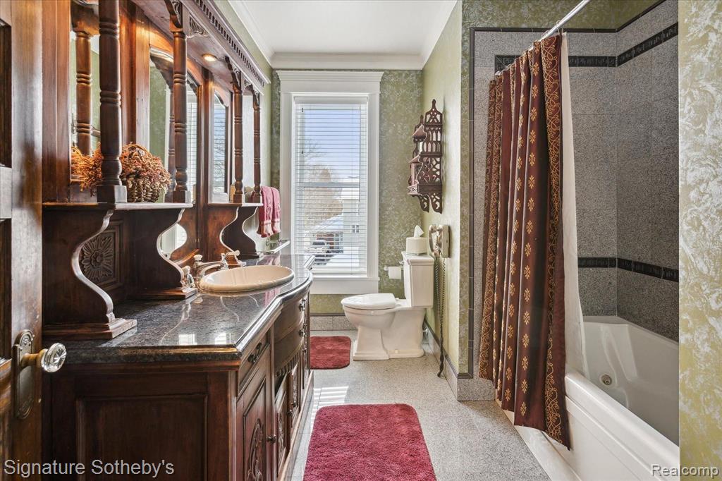 THE CASTLE, like no other! Fully furnished. This property is being sold Turnkey w/hand carved solid wood furniture, artwork, area rugs, & lamps included in sale. Extraordinary with unsurpassed artistry, prime location within the City of Alpena, Michigan w/gorgeous Lake Huron views. The Castle embodies timeless architecture w/the preservation design for present day lifestyles. Enjoy a piece of history w/this restored stunning Victorian stone home, featuring ornate woodwork, leaded glass windows, & wraparound porch. The home originally built for Charles Henry, a Michigan State Senator in 1902. The original design was based on architect H.H. Richardson’s Victorian Romanesque style. The interior design was done by Marshall Fields of Chicago, Il ,who hired an artist from New York to paint oil on canvas murals on all the dining room walls. Convenient to this location is the municipal owned waterfront boat harbor across the street featuring rental boat slips, as well as tennis courts, park, band shell, & public beach. Alpena is also home to the Thunder Bay National Marine Sanctuary & Underwater Preserve consisting of 4,300 square miles. Note the exquisite hardwood flooring thru out & leaded glass accent windows. Hand carved stairwell & cornices show the craftsmanship of that period. There are 3 unique fireplaces; in the foyer sitting room, library, & dining rm. The open flow of the great room offers a window turret area, original Waterford crystal chandelier & large entertaining space. The library with stunning carved partner desk. The dining room is off the foyer w/a beautiful hand painted oil on canvas wall mural. The kitchen is designed for contemporary living with newer cabinetry and stainless appliances. There is a breakfast area in the kitchen overlooking the elevated patio for casual outdoor dining & renovated 1st floor powder rm. Second level offers 5 bedrooms which include staged bedding. Third level is a bonus room w/plenty of extra space. BATVAI |