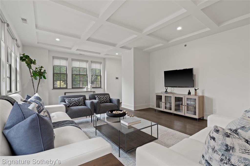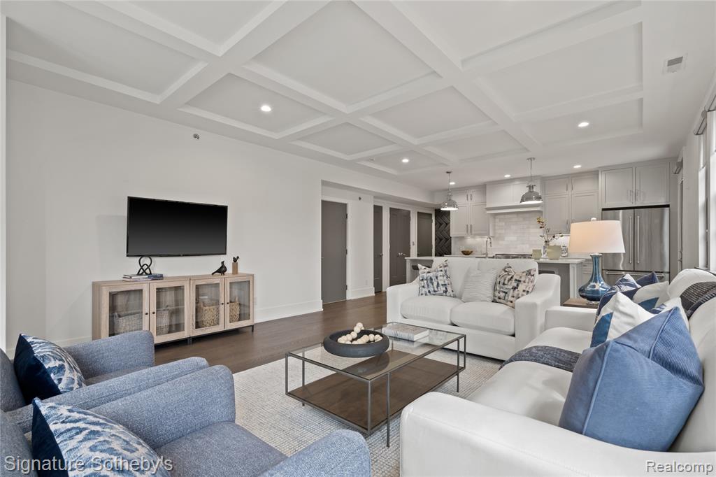 Welcome to Park West luxury residences, offering refined condo living just blocks from Downtown Royal Oak. This 2-bedroom, 2-bathroom condo features rare private elevator access, a private balcony, an attached garage, and dedicated parking—a true rarity for condo living in Royal Oak. Spanning 1,400 sq ft, this home is filled with natural light from wraparound windows and thoughtfully designed with premium finishes and detailed trim work. Highlights include 9’ coffered and tray ceilings, 8’ solid core doors, recessed lighting, wide-plank European oak hardwood flooring, and cozy carpeting in the bedrooms. The light-filled great room flows into a chef’s kitchen equipped with custom cabinetry, stainless steel appliances, Caesarstone countertops, and an oversized island—perfect for entertaining. A 150 sq ft flex room adds extra versatility as an office, gym, or storage space. Enjoy the comfort of a spacious primary suite, beautifully appointed bathrooms, in-unit washer and dryer, central air, and more. This is the perfect opportunity to combine modern living with a vibrant downtown lifestyle! |